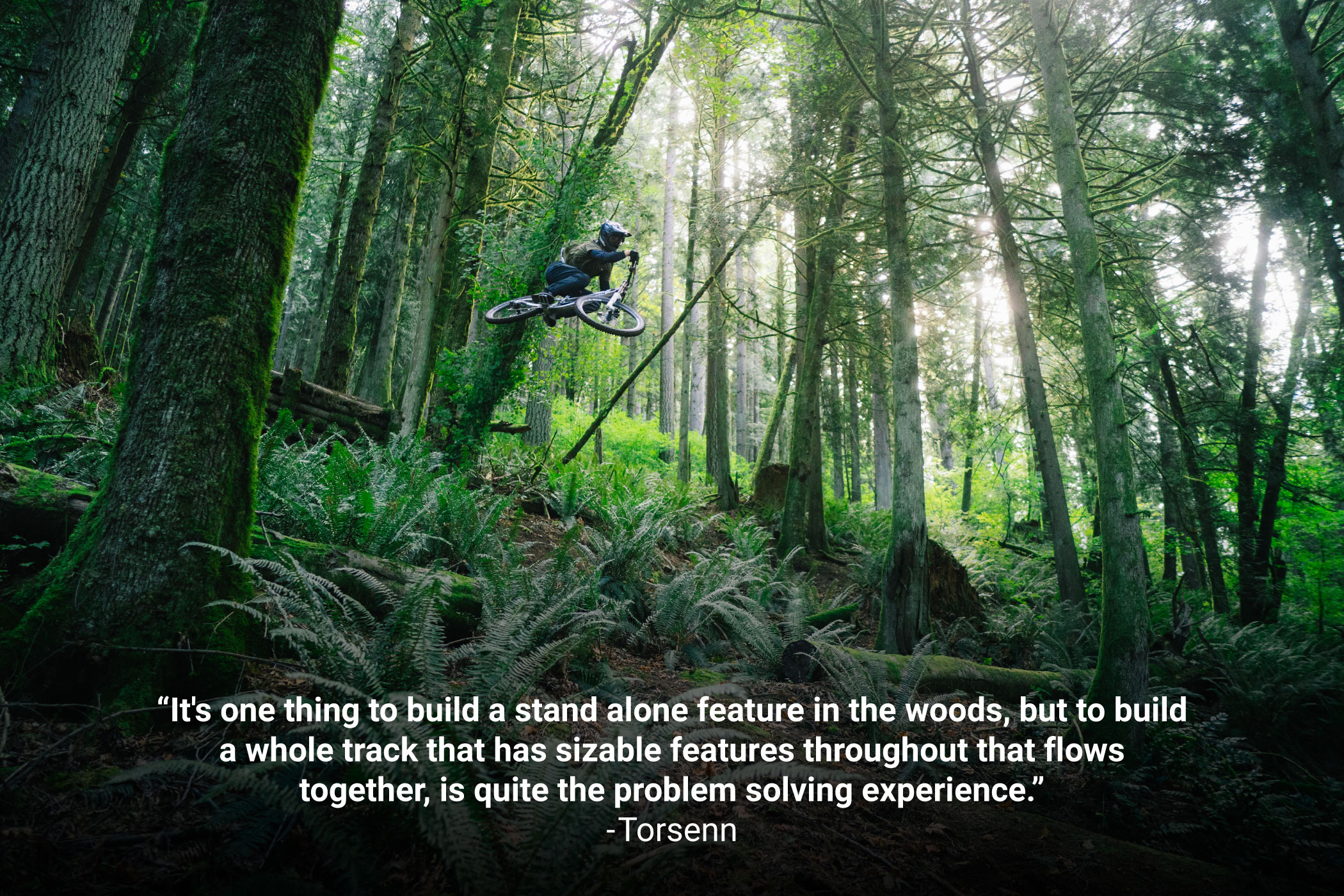 Torsenn Brown spent the last 2 years building jumps and stacking footage to fully cement his transition from racer to freerider. With a background in DH racing, combined with a childhood spent on the ski slopes, Torsenn has crafted his skillset to allow him to excel in all sorts of terrain. For this video, he didn't want to build the classic "trick step up" or super manicured features to throw tricks on, instead, he opted for huge consequence moves, linked with technical trail.
