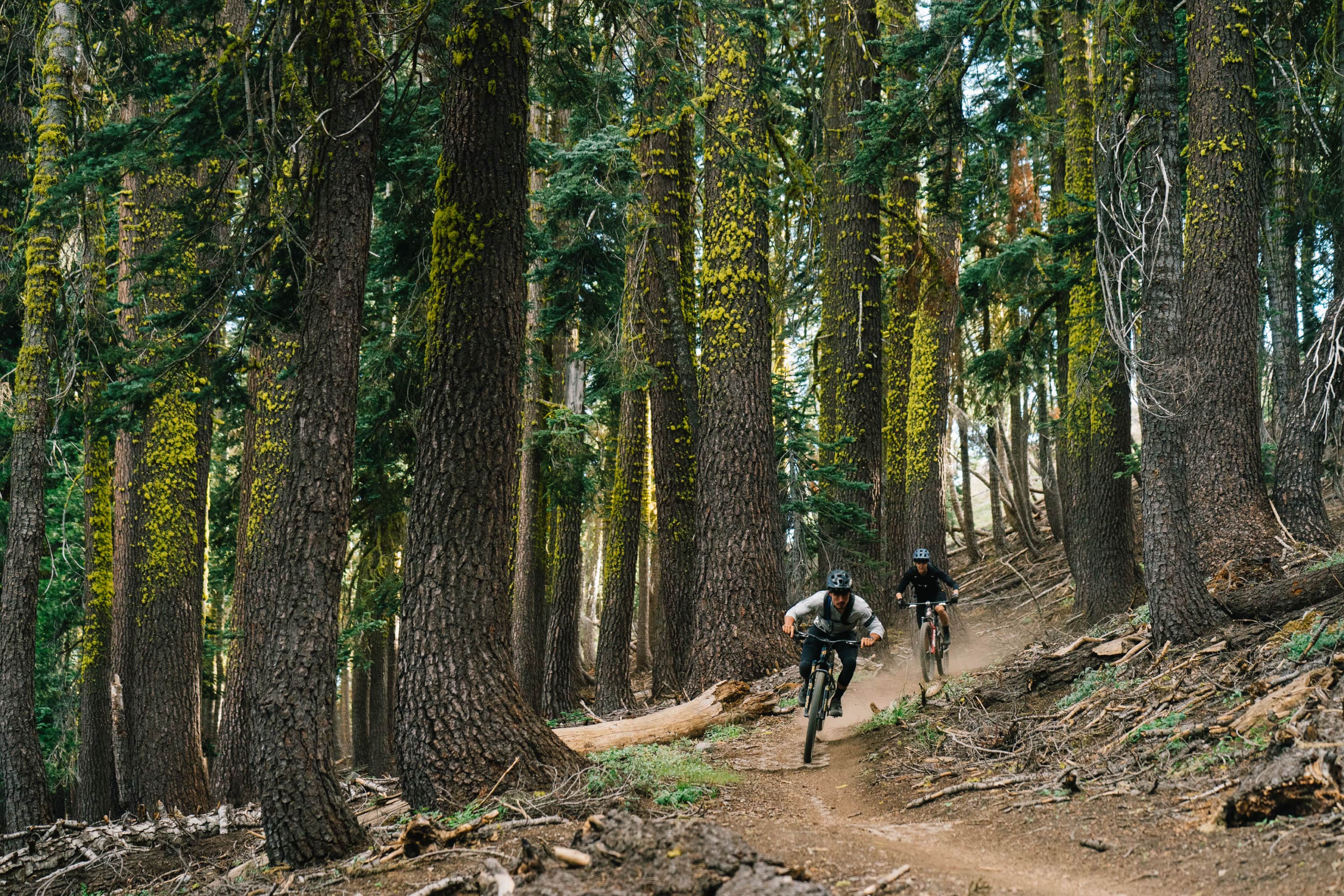 With the chamois off and baggies on, John and Mags rip through Tahoe's legendary Ponderosa forest. No component swaps or geo changes needed to enjoy the fast and loose riding in the Sierra's.